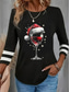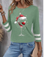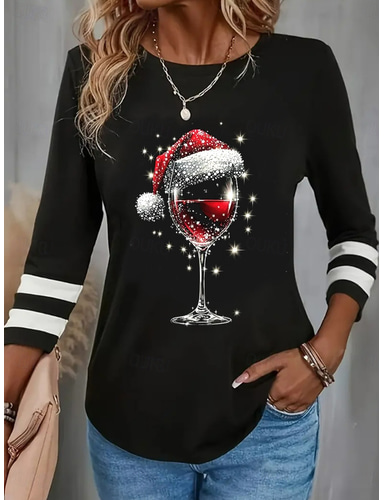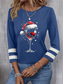 Damen Hemd Bluse Patchwork Weinglas Lässig Langarm Rundhalsausschnitt Normale Oberteile Täglich Weihnachten Blau Schwarz Wein Grün Herbst Winter