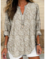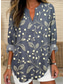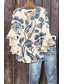 Damenbluse V-Ausschnitt Geschichtete Rüsche Ärmel Oberteile Floral Grafik Alltag Stilvoll Lässig 3/4-Ärmel Reguläre Oberteile Alltag Urlaub Freizeit Print Blau Beige Hellblau Sommer Frühling