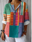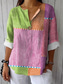 Womens Bluse Leinenähnlich Atmungsaktiv Leicht Grafik Geometrisch Farbblock Vintage Tropisch Hawaiian Reguläre Oberteile Täglich Urlaub Strandbekleidung Patchwork Knöpfe Druck Pink Grün Sommer