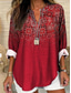 Womens Shirt Leinenähnlich Atmungsaktiv Leicht Floral Grafik Elegant Bohemia Täglich Lange Ärmel Hemdkragen Reguläre Oberteile Arbeit Täglich Knöpfe Druck Rot Frühling Herbst Winter