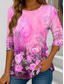 Damen T-Shirt Langarm Rundhalsausschnitt Langarm Tunika 3D Druck Floral Grafik Lässig Reguläre Tops Täglicher Druck Rosa Lila Grün Khaki Herbst Vorherbst