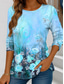 Damen T-Shirt Langarm Rundhalsausschnitt Langarm Tunika Floral Grafik Lässig Reguläre Tops Täglicher Druck Himmelblau Frühling Herbst Vorherbst