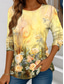 Damen T-Shirt Crew Neck Langarm Tunika Grafik Pflanzen Vintage Stilvoll Klassisch Reguläre Oberteile Täglicher Wochenenddruck Gelb Blau Lila Orange