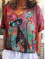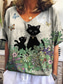 Damen T-Shirt Floral Katze Mode Modern Lässig Kurzarm V-Ausschnitt Reguläre Oberteile Täglicher Wochenend Druck Rot Blau Grün Grau Sommer