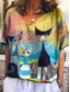Damen T-Shirt, modisch, lustiger Hunde-Print, kurzärmlig, normale Oberteile, Rundhalsausschnitt, für den Alltag, Wochenende, weiß, gelb, blau, braun, grau, Frühling& Sommer
