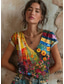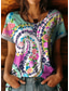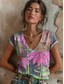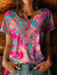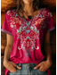Damen Boho T-Shirt Floral Grafik Pflanzen Vintage Stilvoll Lässig Kurzarm V-Ausschnitt Regelmäßige Tops Täglicher Wochenend-Stickdruck Blau Hellgrün Rot Rosarot Sommer Frühling
