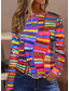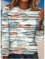 Damen T Shirt Druck Grafik Geometrisch Gestreift Vintage Mode Stilvoll Langarm Rundhalsausschnitt Rundhals Normale Oberteile Täglich Weiß / blau Hellgrün Khaki Sommer Frühling Herbst