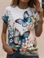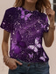 Damen T-Shirt Florales Rundhalsausschnitt Kurzarm 3D Schmetterlingsdruck Elegante Lässige Kleidung Frühling Sommer Komfort Fit Lila Multigrößen Mode Oberteil