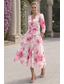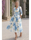 A-Linie Knöchellänge Tee-Länge Blumenkleid Cocktailkleider Elegant Blumen Halbformell / Cocktail Dreiviertelarm V Ausschnitt Gartenparty Hochzeit Organza Jacquard mit Blumenmuster Falten