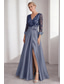 A-Linie Bodenlang Abendkleid Festliche Kleidung Elegant Lässige Hochzeit / tagsüber Langarm V Ausschnitt Hochzeit Formell Satin mit 3D-Blumen Falten Schlitz