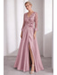 Formelle Hochzeitskleider Zweiteilig Ein Schulter Lange Ärmel Bodenlang Satin Hochzeitskleider mit Schärpe Band Beading