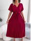 Damen Maxikleid Wickelkleid A Linie Kleid Elegant Formell Hochzeitsgast Cocktailparty Normale Passform Einfach Kurzarm V Ausschnitt Wein Sommer
