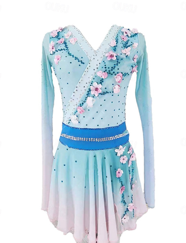 Eiskunstlaufkleid Damen Mädchen Eislaufen Kleid Blau+Hellblau Patchwork Daumenloch Spandex Hohe Elastizität Training Professionell Wettbewerb Eiskunstlaufkleidung Klassisch Kristall / Strass Langarm