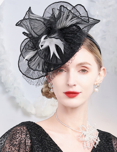 Haaraccessoire Tüll Hochzeit Elegant Vintage Mit Feder Tüll Kopfschmuck Kopfbedeckung Fascinator Renntag Kleid