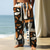 Herren Hosen Baggy Pants Lässige Hose Elastischer Kordelzug Bund Leinenähnliche Hose mit Taschen Schädel Flamme Kostüme Volle Länge Outdoor Urlaub Dunkler Punk Gothic Stil Schwarz Rot Schwarz+Grau