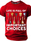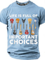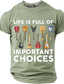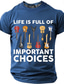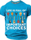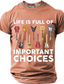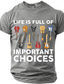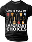 Das Leben eines Mannes ist voller wichtiger Entscheidungen. Gitarrenkollektion – Grafik-T-Shirt mit lustigem, sarkastischem Gitarristen- und Musiker-Motiv – Geschenkidee. Schwarz, normale Passform,