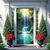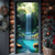 3D-Türbanner mit japanischem Gartenmotiv, Wasserfall und Koi-Teich, realistische Naturansicht, Wandbehang für Veranda/Eingangsbereich