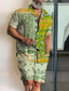 Herren Druck 2St Hemden-Sets Sommeroberteile Kurzarm Lange Hosen Kurze Hosen Kubanisches Halsband Urlaub Alltagstauglich Party Lässig Täglich 3D-Druck Sommer Grün Rote