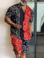 Herren Geometrisch 2St Hemden-Sets Sommeroberteile Kurzarm Kurze Hosen Umlegekragen Lässig Outdoor Heim Lässig 3D-Druck Sommer Rubinrot Schwarz Rote