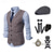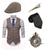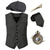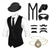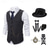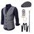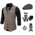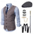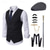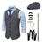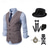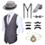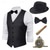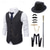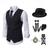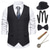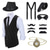 Herren 1920er Gangster Outfit Weste mit Zubehör Set 5 Stück Retro Vintage Roaring 20s Motto Party Cosplay Kostüm Panama Hut Bart Brosche Stock