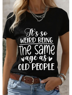 Damen T Shirt Druck Grafik Buchstabe Stilvoll Lässig Kurzarm Rundhalsausschnitt Normale Oberteile Täglich Wochenende Blau Rosa Purpur Grau Sommer