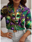 Karneval Damen Hemd Leinenähnlich Atmungsaktiv Leicht Button-Down Tunika Hemdkragen Lange Ärmel Grafik Lässig Reguläre Tops Arbeit Täglich Druck Grün Frühling Herbst Winter