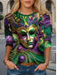 Karneval Damen T-Shirt Langarm Tee Grafik Lässig Langarm V-Ausschnitt Reguläre Oberteile Täglicher Cut Out Druck Lila Grün Frühling Herbst Vorsaison