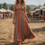 Böhmische Retro Vintage Boho Lange Länge Kleid Ärmellos Böhmische V Ausschnitt Kostüm Damen Maskerade Musikfestival Retro-Mottoparty Erwachsene Kleid Sommer