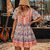 Böhmische Retro Vintage Boho Kleid Kurze Ärmel Böhmische Kostüm Damen Maskerade Musikfestival Retro-Mottoparty Erwachsene Kleid Sommer