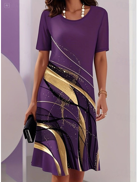 Damen Midikleid Shiftkleid T-Shirt-Kleid Sommerkleid Lässig Täglich Normale Passform Grafik Abstrakt Kurzarm Rundhalsausschnitt Blau Purpur Grün Grau Sommer Frühling