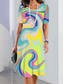 Damen Midikleid A Linie Kleid Sommerkleid Figurbetontes Kleid Party Lässig Täglich Ferien Normale Passform Grafik Farbblock Abstrakt Kurzarm V Ausschnitt Schwarz Orange Regenbogen Sommer