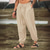 Herren Leinenhosen Hose Sommerhose Baggy-Hosen Kordelzug Elastischer Bund Seitenknopf Einfach Atmungsaktiv Volle Länge Outdoor Urlaub Lässig Urlaub Ethno-Stil Schwarz Weiß