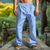 Herren Leinenhosen Hose Sommerhose Kordelzug Elastischer Bund Weites Bein Einfach Komfort Atmungsaktiv Volle Länge Lässig Täglich Ferien Mode Klassicher Stil Lässiger Schnitt Weiß Marineblau