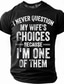 Herren lustiges Grafik T-Shirt "Ich hinterfrage niemals die Entscheidungen meiner Frau weil ich einer von ihnen bin" Ehemann Beziehung Humor
