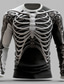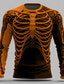 Herren 3D Skelett T Shirt Langarm T-Shirt 3D-Druck Rundhalsausschnitt Hemd Mode Übertrieben Straße Lässig Täglich Blau Orange Grün Sommer Frühling Herbst Bekleidung S M L XL XXL XXXL