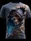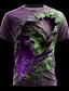 Herren Optische Täuschung Sensenmann 3D T Shirt Kurzarm T-Shirt 3D-Druck Rundhalsausschnitt Hemd Übertrieben Designer Horror Club Party Straße Blau Purpur Orange Sommer Frühling Ganzjahres Bekleidung
