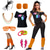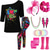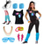 Damen 80er Kostüme Outfit 1980er T-Shirts Accessoires Set T-Shirt Tutu Rock Ohrringe Halskette Armbänder Netzhandschuhe Stulpen Stirnband 8-tlg Schlager Outfit