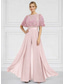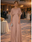 Overalls Schlauchkleid Bodenlang Brautmutterkleid Dreiviertelarm Illusionsausschnitt Elegant Formell Hochzeitsgast Chiffon mit Stickerei Einfarbig