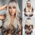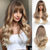 24 Perücken für Frauen Synthetische Perücken Lange Wavy Blond mit Flauschigen Luft Pony Hell Halloween Perücken