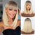 Staright Perücke mit Pony synthetische mittellange geschichtete Perücken für Frauen blonde Farbe