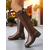 Braune kniehohe Reitstiefel für Damen mit seitlichem Reißverschluss und geflochtenem Besatz – klassische Westernstiefel aus Kunstleder im Reitsportstil für Damen, für Herbst und Winter, für draußen