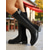 Schwarze kniehohe Reitstiefel für Damen mit niedrigem Blockabsatz, schlichtes minimalistisches Design für urbanes Fashion-Styling