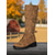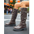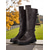 braune Damenstiefel mit halbhoher Wade – Kunstleder im Used-Look, Riemen mit Doppelschnalle, robuster Freizeitschuh für draußen