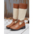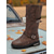 Braune Damen-Reitstiefel aus Kunstleder mit Schnalle und Canvas – lässige, zweifarbige Kniestiefel für Arbeit, Reisen und Outdoor