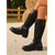 Schwarze kniehohe Plateau-Reitstiefel für Damen – dicke Stollensohle für den Reitstil, Herbstmode und Freizeitkleidung im Freien