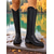 braune kniehohe Reitstiefel für Damen – Kunstleder mit Schnalle im Reitsport-Kampfstil für herbstliche Outdoor-Abenteuer und mittelalterlich inspiriertes Cosplay