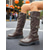 braune kniehohe Reitstiefel für Damen mit Schnallenriemen – Plateaustiefel im Gothic-Militärstil für Herbstmode, Cosplay und Festival-Outfits