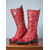 Damen-Kniestiefel im Vintage-Stil der 1950er Jahre mit roter Stickerei und Blockabsatz zum Schnüren – Lederstiefel mit Blumenmuster für Freizeitkleidung und Western-Stil