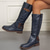 Kniehohe Westernreitstiefel für Damen mit Schnallenriemen – Overknee-Stiefel aus Kunstleder im Vintage-Stil für die Freizeit und den Outdoor-Bereich