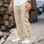 Herren Cargo-Hosen Leinenhosen Hose Sommerhose Strandhose Kordelzug Elastischer Bund Mehrere Taschen Einfach Komfort Atmungsaktiv Volle Länge Outdoor Lässig Ferien Mode Retro Vintage Schwarz Weiß